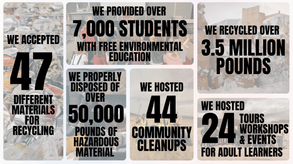 Since 1990, Recycle Utah has grown from a few bins in a parking lot to a thriving community hub. Today, we: